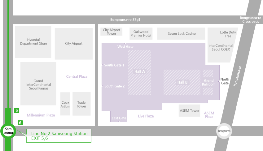 in detail | Enter through the passage directly connected to Samseong Station Exits 5 and 6, or access Starfield Coex Mall via Millenium Plaza |